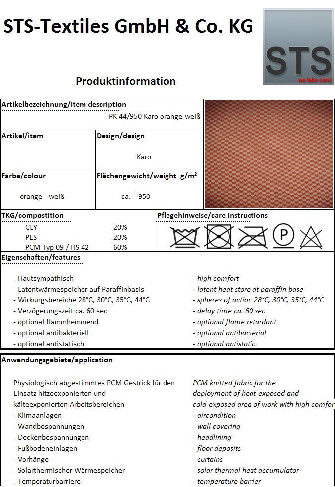 > Datenblatt: Latentwärmespeicher PK44 in Karo weiß-orange