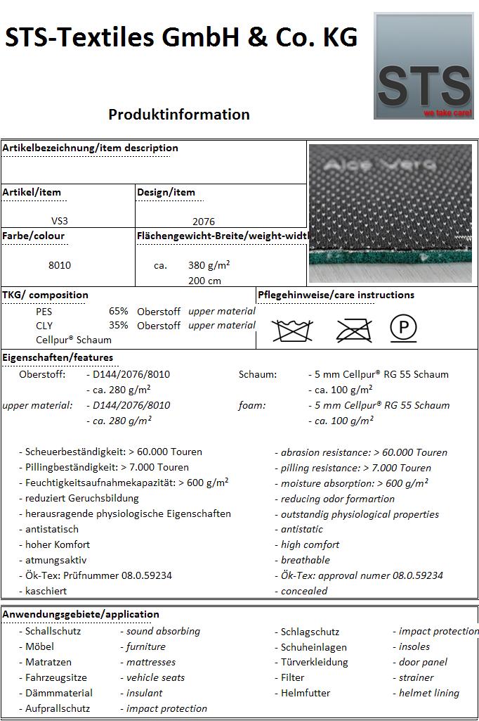 > Datenblatt: VS3/2076/8010 mit Cellpur-Schaum kaschiert